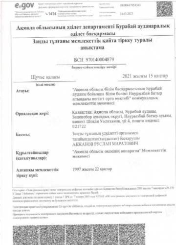 "Ақмола облысы білім басқармасының Бурабай ауданы бойынша білім бөлімінің Наурызбай батыр атындағы негізгі орта мектебі" коммуналдық мемлекеттік мекемесі
